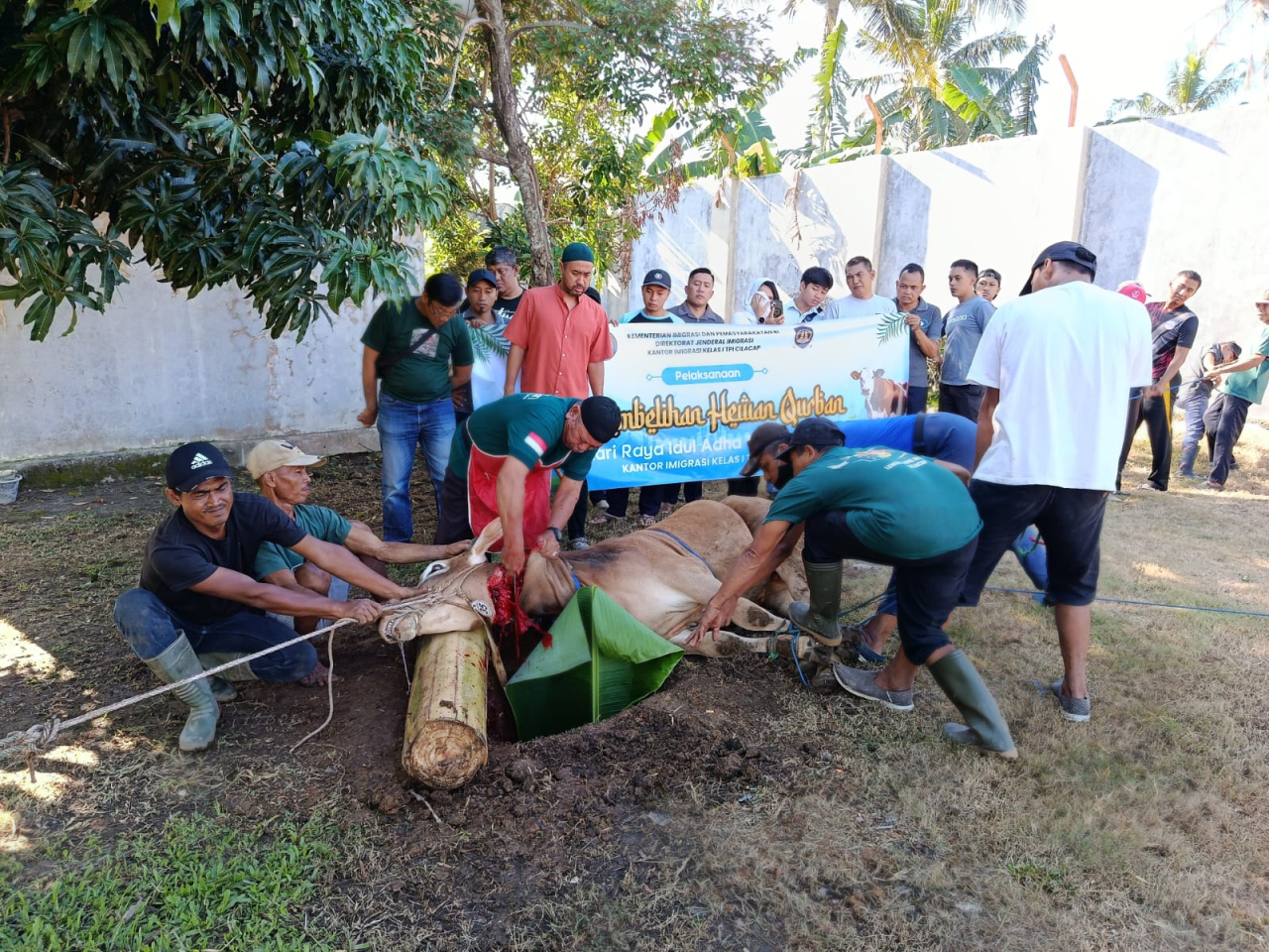 Penyembelihan hewan kurban ini dalam rangka Hari Raya Idul Adha 1446 H, dan dilaksanakan di halaman Kantor Imigrasi Cilacap di Jalan Otto Iskandar Dinata, Gumilir.