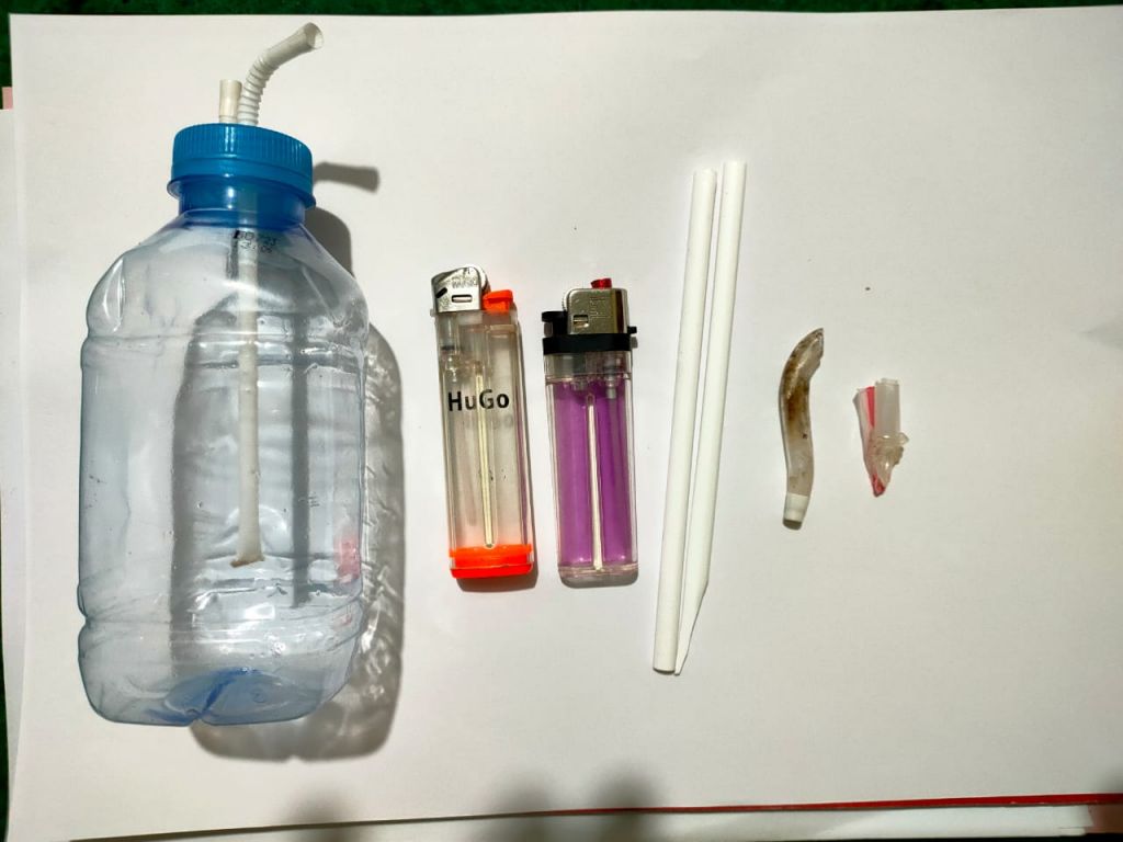 Saat digeledah, polisi mendapatkan barang bukti berupa alat hisap atau bong, 2 korek api, 2 sedotan plastik, satu klip plastik kosong dan pipa kaca yang berisi sisa sabu.