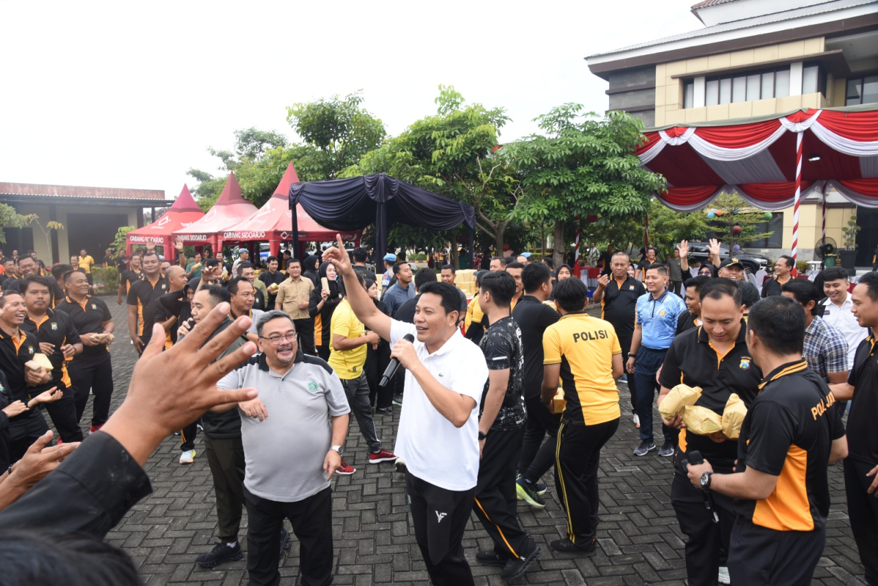Bupati Sidoarjo H. Subandi serta Kapolresta Sidoarjo Kombes Pol Christian Tobing dan Dandim 0816 Sidoarjo Letkol Inf Dedyk Wahyu Widodo kompak senam barsama seluruh anggota Polresta Sidoarjo.