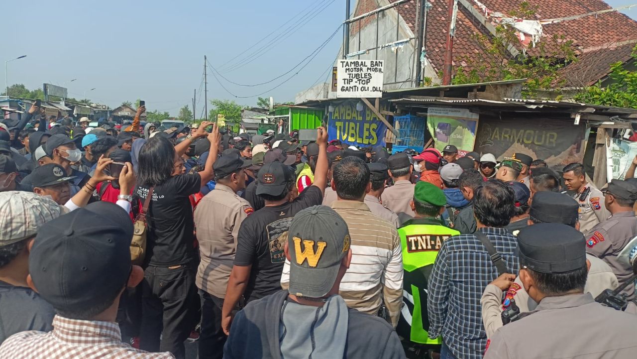 “Kami bersama ribuan massa di sini untuk mempertahankan tanah kami. Tadi sempat terjadi aksi saling dorong dengan aparat saat juru sita Pengadilan Negeri Sidoarjo tiba di lokasi,” ujar Andi Fajar.