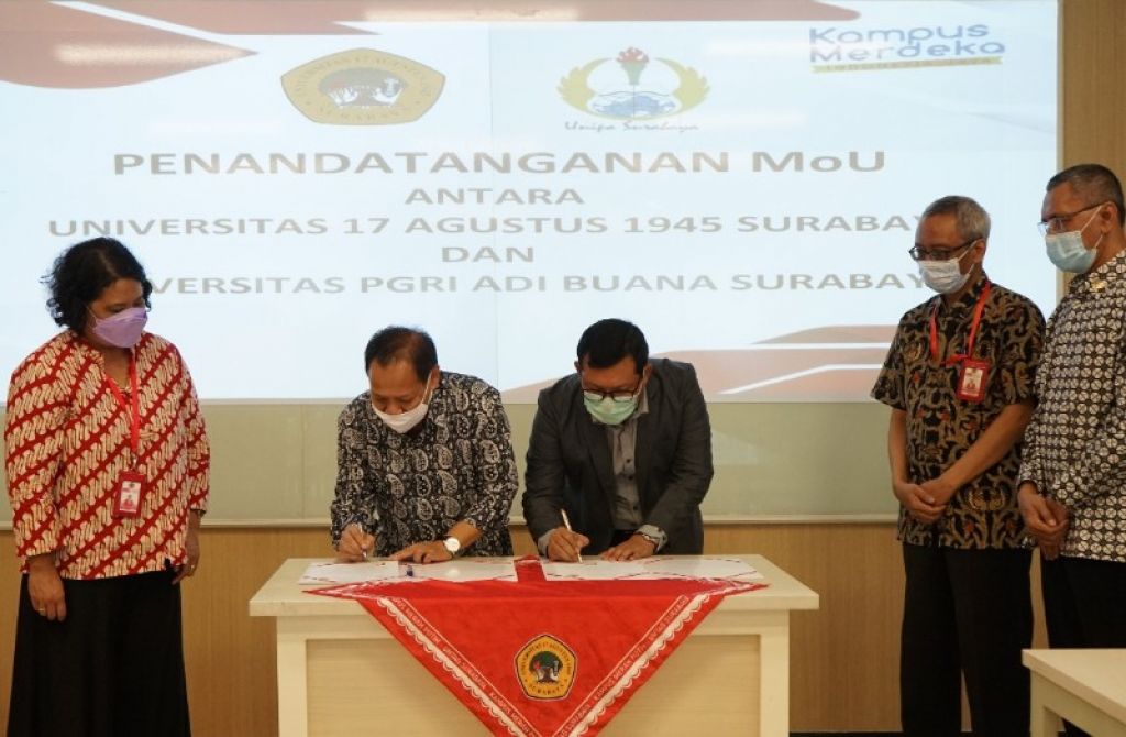 SURABAYA(Realita)-Universitas 17 Agustus 1945 (Untag) Surabaya memperluas jalinan kerjasama untuk menerapkan kebijakan ‘Merdeka Belajar, Kampus Merdeka’ yang dicanangkan oleh Kemendikbudristek RI. Badan Kerjasama Untag menerima kunjungan dari Universitas PGRI Adi Buana (UNIPA) Surabaya untuk melakukan kerjasama.
