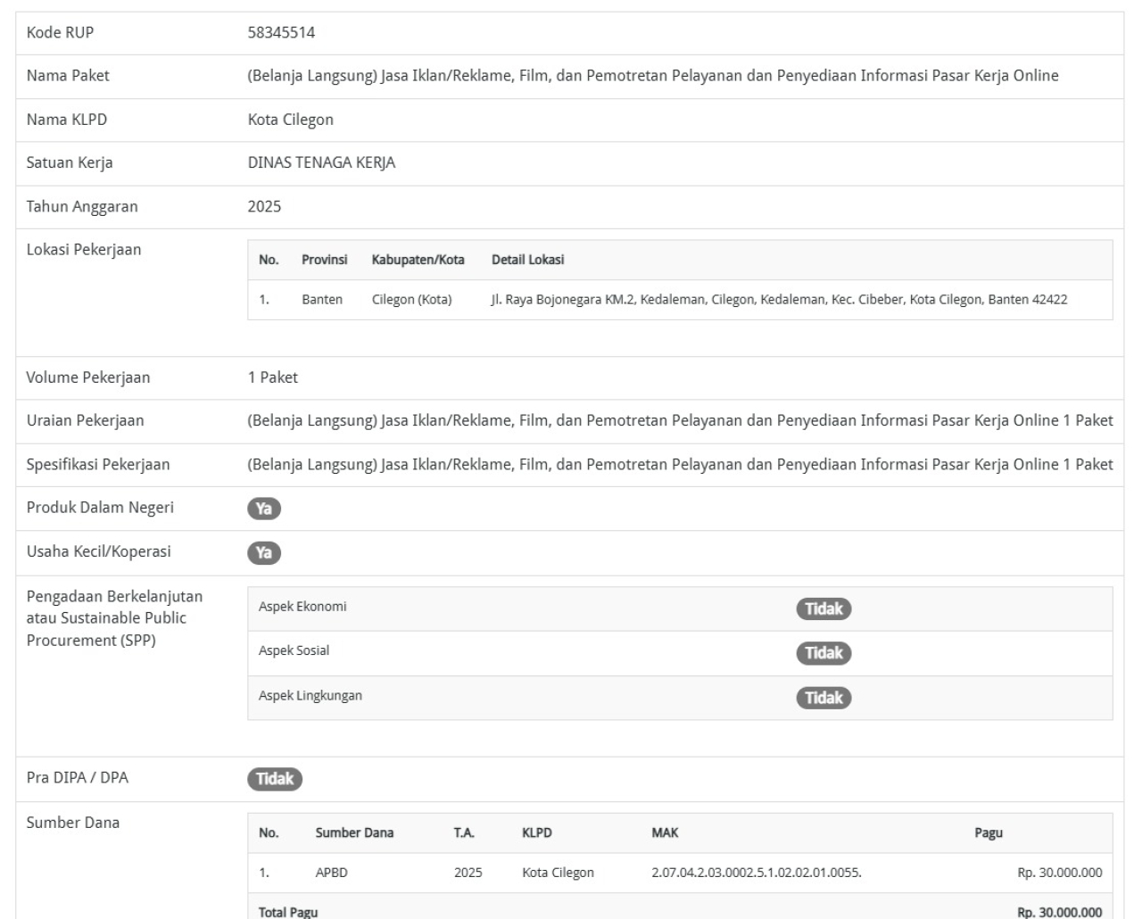Kritik tersebut disampaikan Zainal usai menganalisis dokumen Rencana Umum Pengadaan (RUP) Pemkot Cilegon untuk semester pertama 2025. Dalam catatannya, terdapat 75 paket iklan dengan nilai lebih dari Rp4 miliar, namun sebagian besar tidak menyentuh media lokal independen.