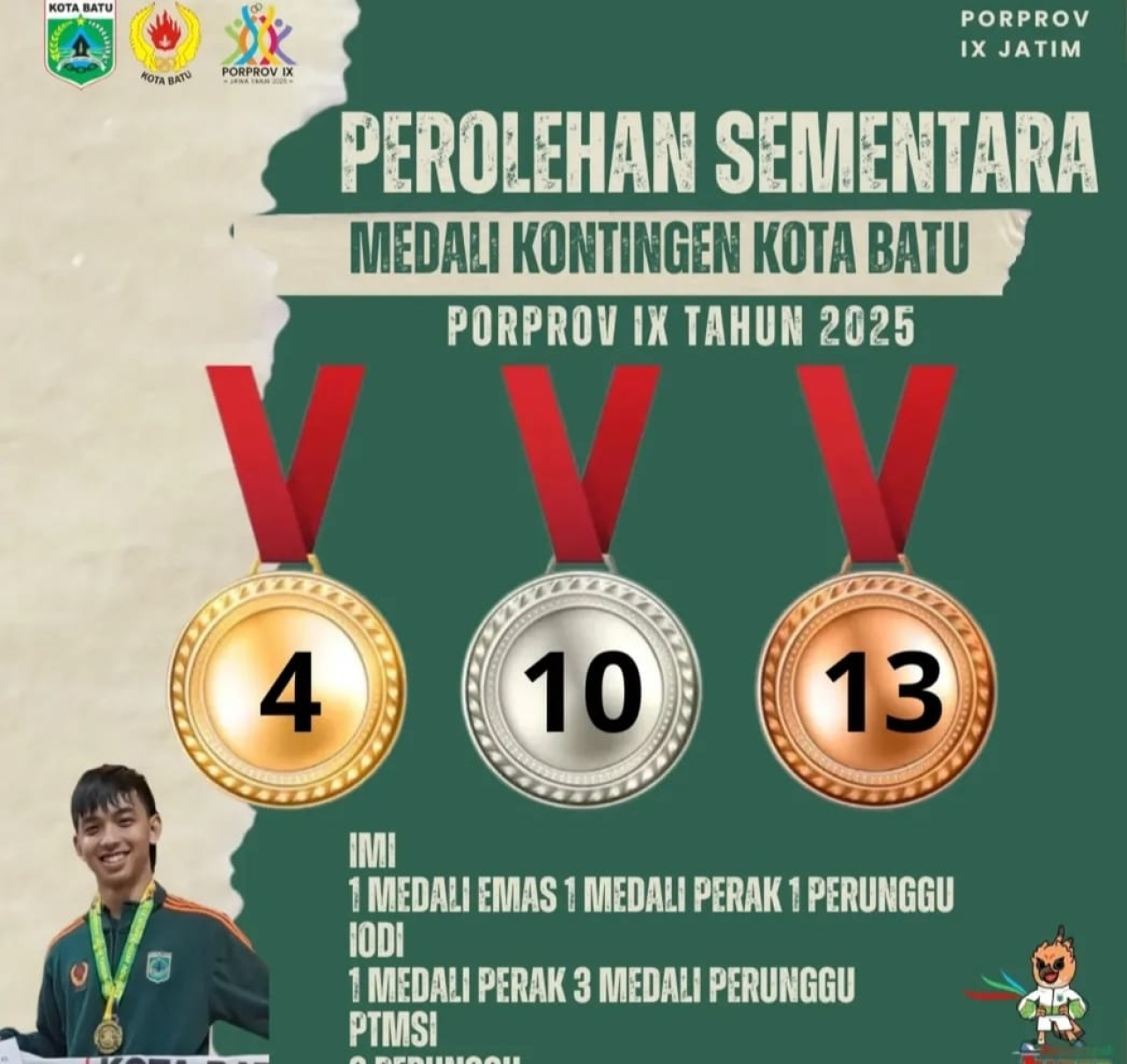 Kepercayaan diri ini berkaca pada Porprov VIII Jatim 2023 dengan meraih 22 medali emas dan masuk peringkat 14 besar pada saat itu. Hingga kini Kontingen Kota Batu di Pekan Olahraga Provinsi (Porprov) IX Jatim 2025 masih berjibaku berjuang penuh semangat untuk bisa mengumpulkan medali sebanyak mungkin di setiap cabor.