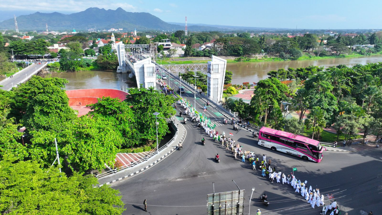 KEDIRI (Realita) - Wali Kota Kediri, Vinanda Prameswati bersama Wakil Wali Kota Kediri, Qowimuddin Thoha memberangkatkan Pawai Ta'aruf, di Halaman Balai Kota Kediri, Minggu, 29 Juni 2025.