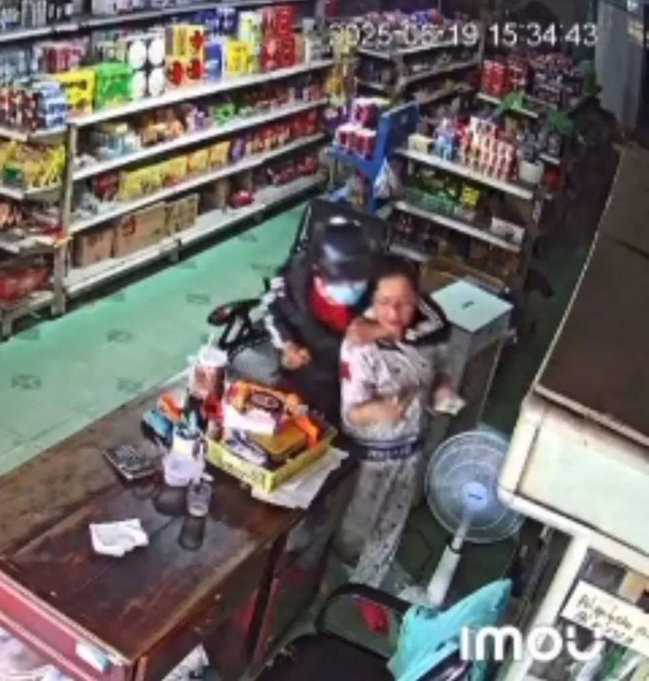 Melihat tidak ada seorang pun di toko, pria itu mengeluarkan pisau dan meminta uang dari pemilik toko. Meskipun pemilik toko memberinya uang, perampok tetap menyerangnya dengan brutal.