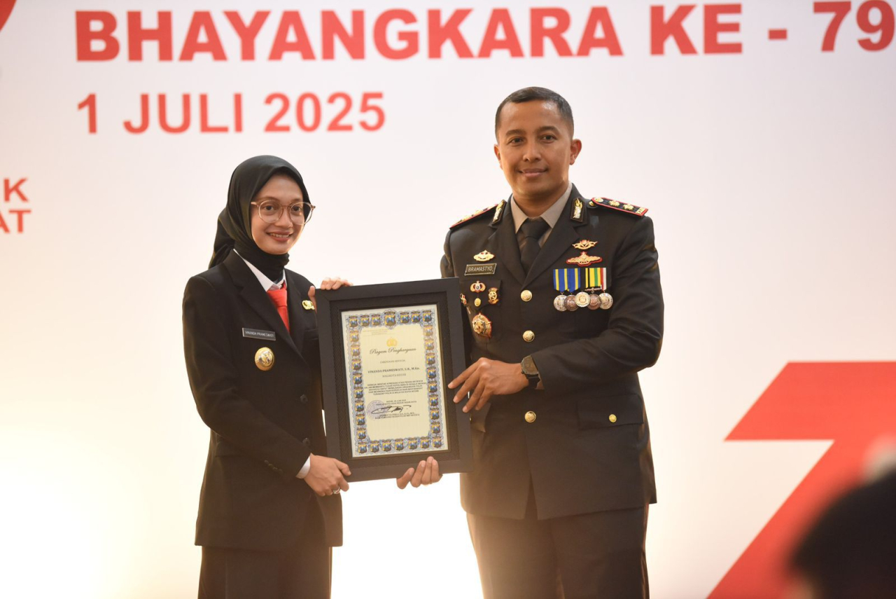 Dalam acara ini, Wali Kota Kediri dan Wakil Wali Kota menerima penghargaan dari Polres Kediri Kota.