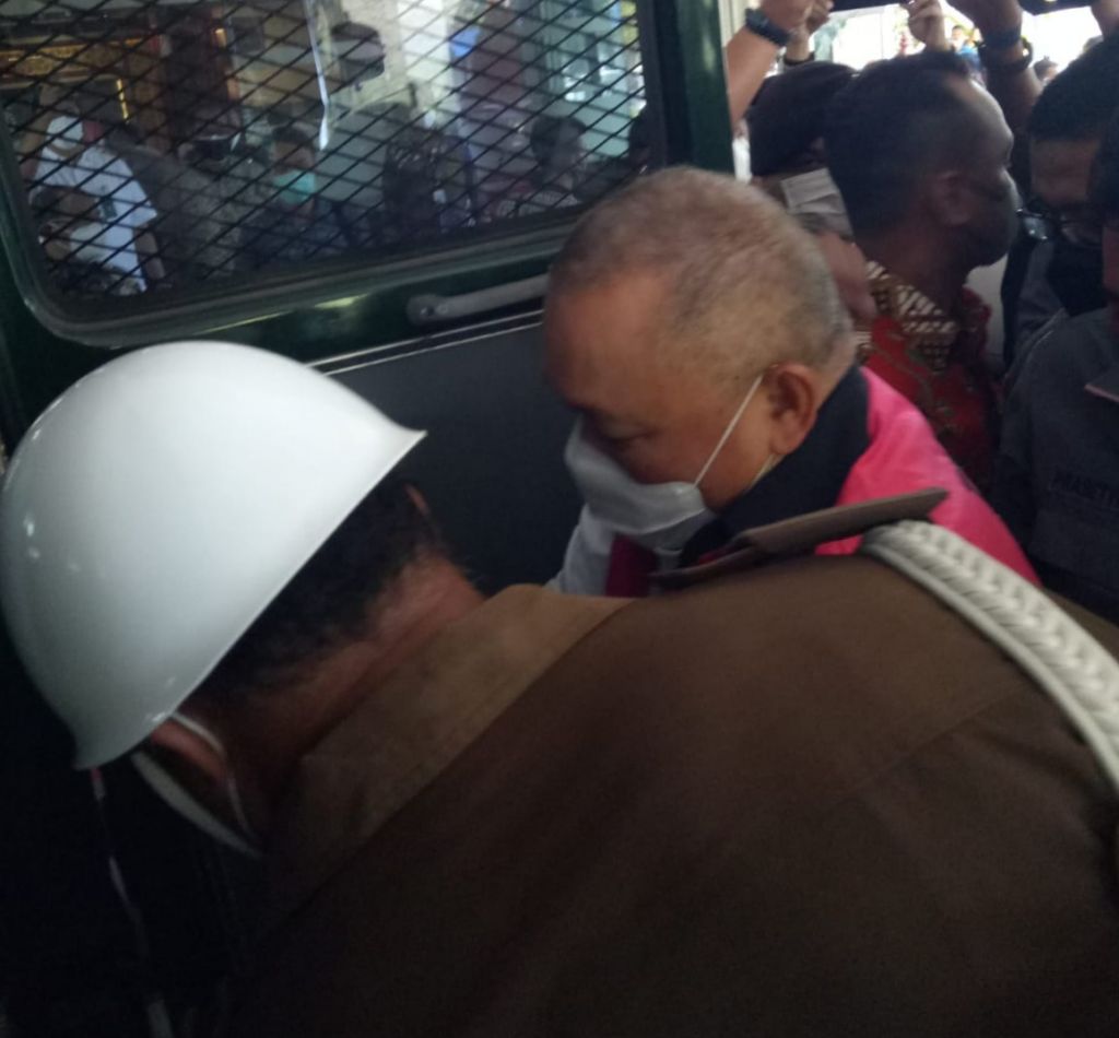 Sebelum ditahan, Alex menjalani pemeriksaan selama enam jam di gedung Bundar Kejagung, dan keluar menggunakan rompi tahanan berwarna merah muda.
