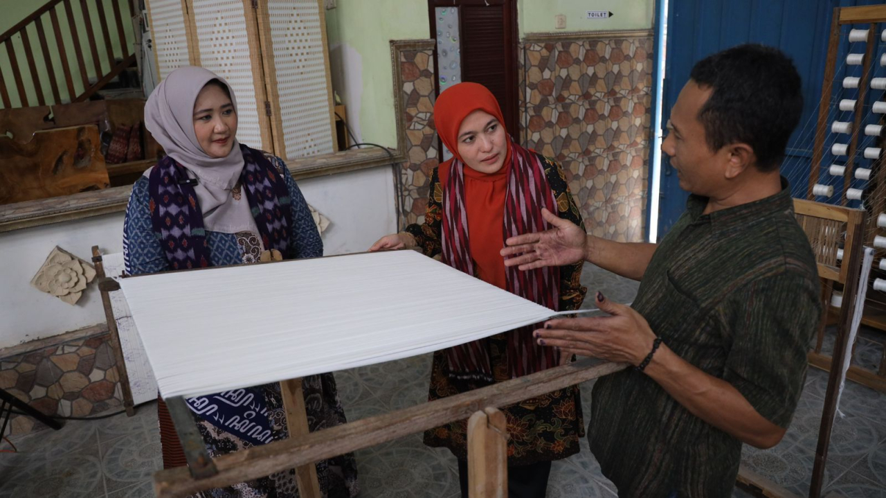 Destinasi selanjutnya Tenun Ikat Medali Mas Bandar Kidul. Ning Faiq menjelaskan, tenun ikat ini menjadi salah satu industri kerajinan andalan Kota Kediri yang sudah eksis sejak 35 tahun lalu.