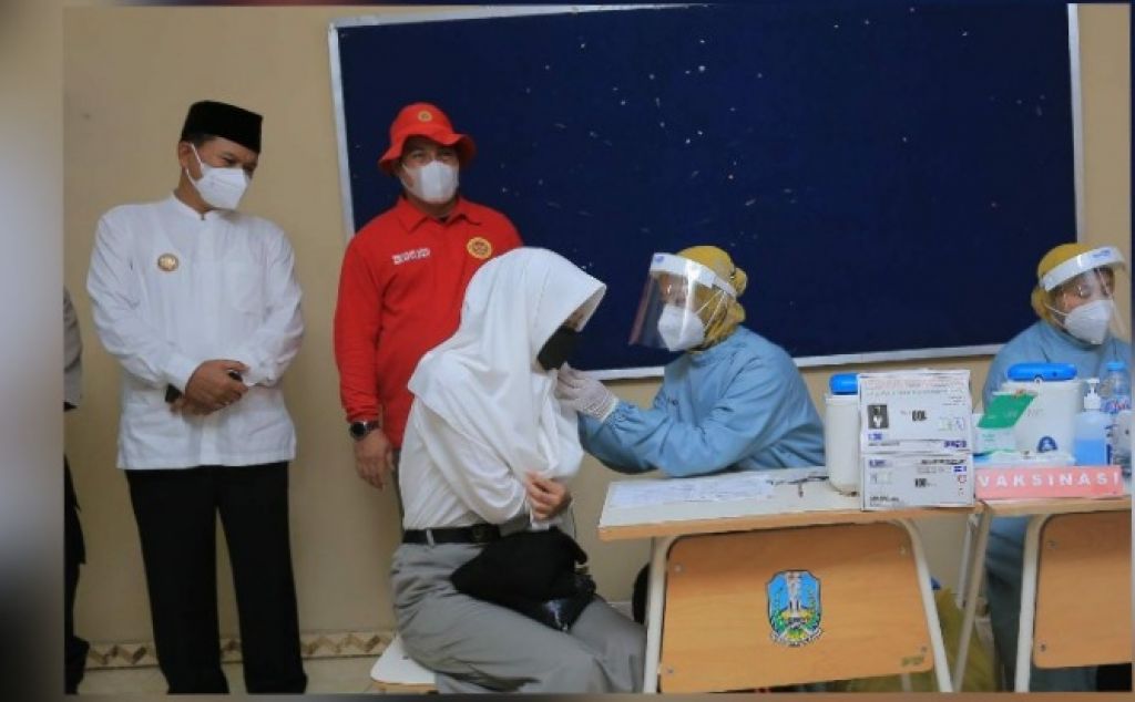 Sedangkan untuk wilayah Jawa Timur, total terdapat 300.000 dosis vaksin yang telah disuntikkan. Melalui vaksinasi itu diharapkan kegiatan pembelajaran tatap muka seluruhnya bisa terlaksana tanpa khawatir terpapar corona.