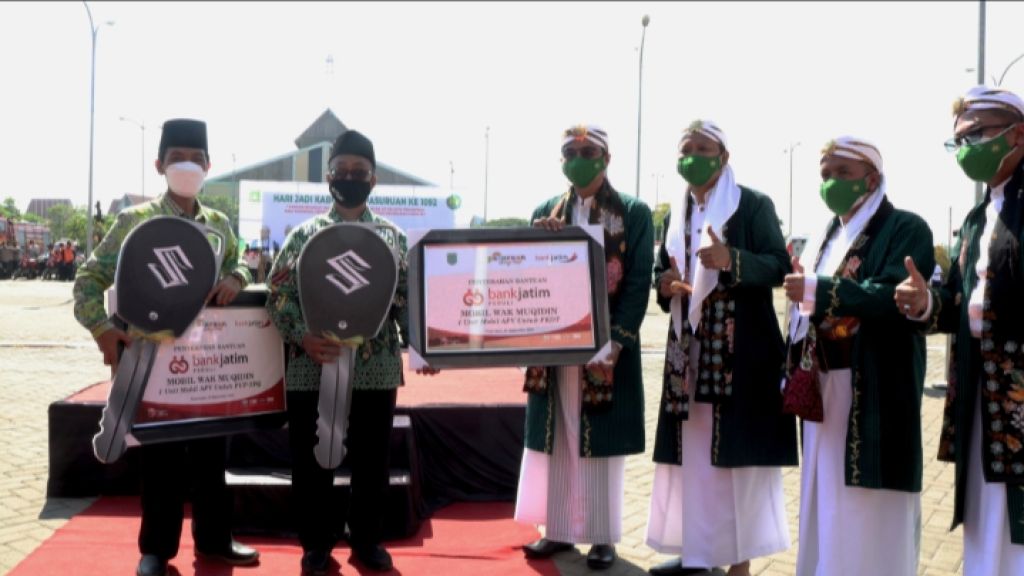 Bantuan Corporate Social Responsibility (CSR) Bank Jatim Peduli itu berupa 2 unit mobil operasional Wak Muqidin (Wayahe Kumpul Mbangun Taman Pendidikan Al Qur’an & Madrasah Diniyah), diserahkan secara simbolis oleh Direktur Teknologi Informasi dan Operasi Bank Jatim Tonny Prasetyo bersama PC Bank Jatim Pasuruan Deddy Aji Wijaya kepada Bupati Pasuruan H.M Irsyad Yusuf, di Komplek Perkantoran Raci Kabupaten Pasuruan.