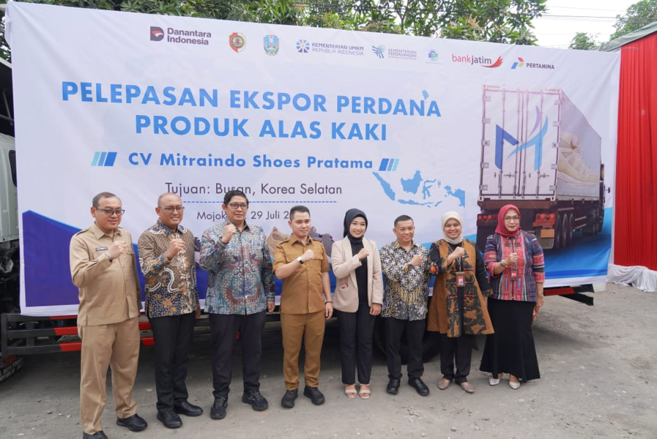 Plt. Direktur Utama Bank Jatim Arif Suhirman menjelaskan, CV Mitraindo Shoes Pratama merupakan UKM Binaan Bank Jatim dari Mojokerto. Adapun produk alas kaki yang diberangkatkan itu bernilai USD 37.060 atau setara Rp 602 juta.
