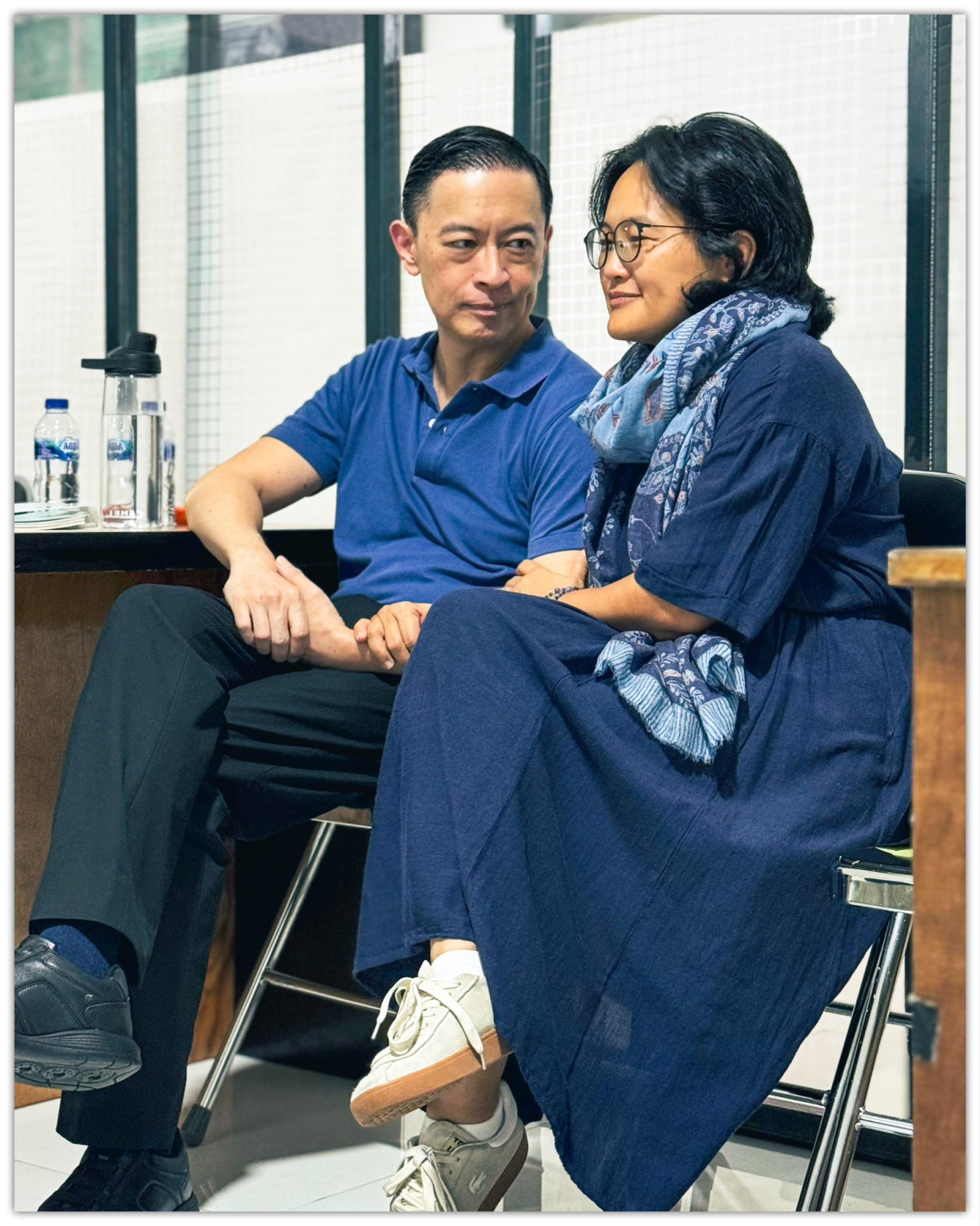 Selama Anies berbicara, Tom Lembong kembali merangkul sang istri.beb