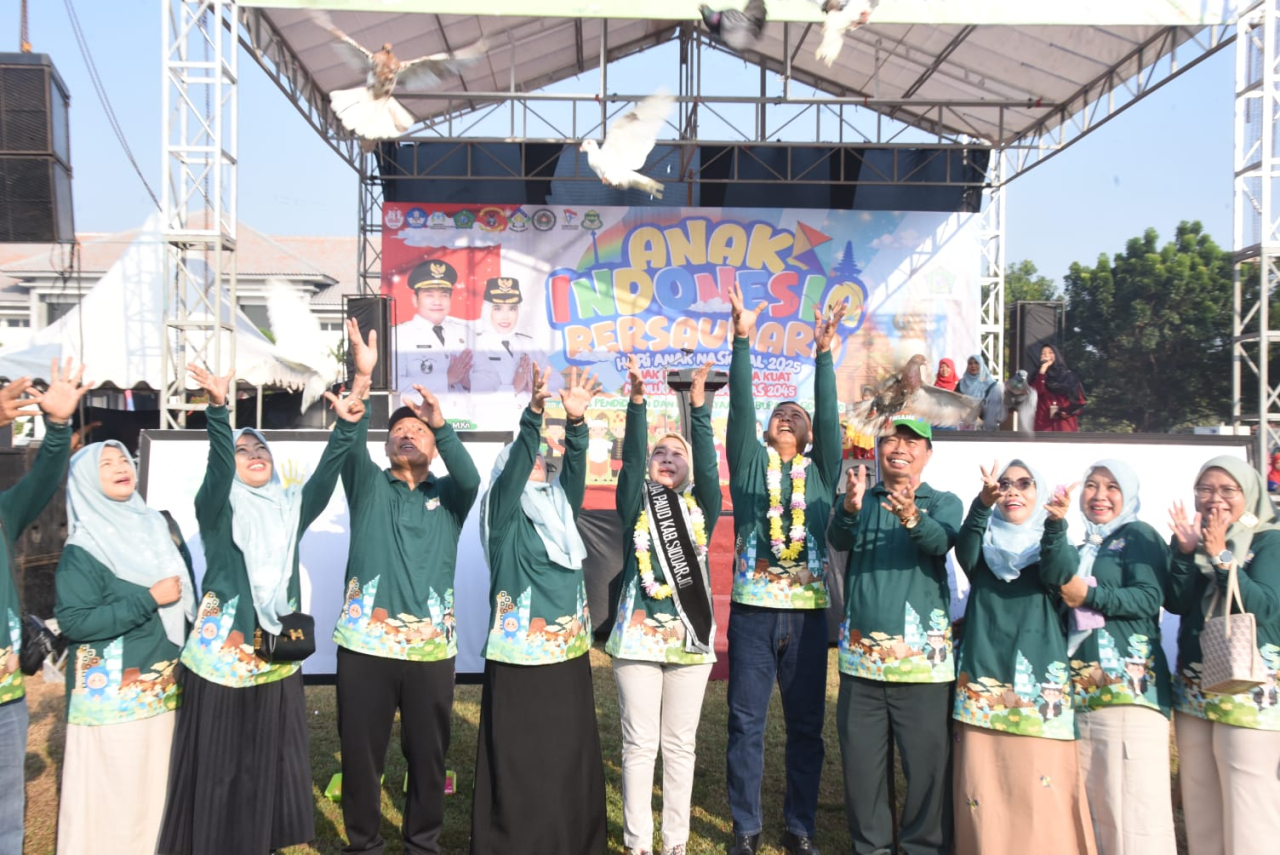 Hj. Sriatun Subandi juga mengajak semua pihak untuk dapat memastikan tumbuh kembang anak-anak dengan baik. Menurutnya sudah menjadi tugas bersama untuk memastikan anak-anak tumbuh menjadi pribadi yang sehat, cerdas, tangguh, berkarakter dan saling menyayangi satu sama lainnya.