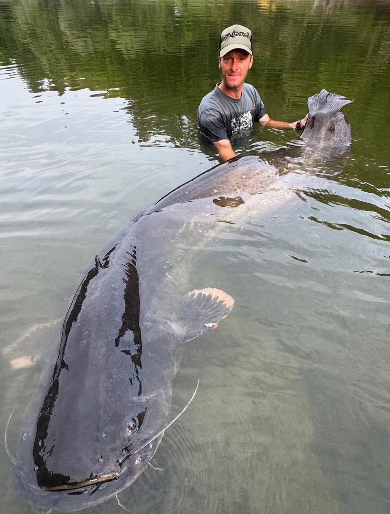 Gambar-gambar di akun media sosialnya menunjukkan dia dengan lele raksasa, yang ukurannya sedikit lebih panjang dari yang ditangkapnya sekitar 10 bulan yang lalu.