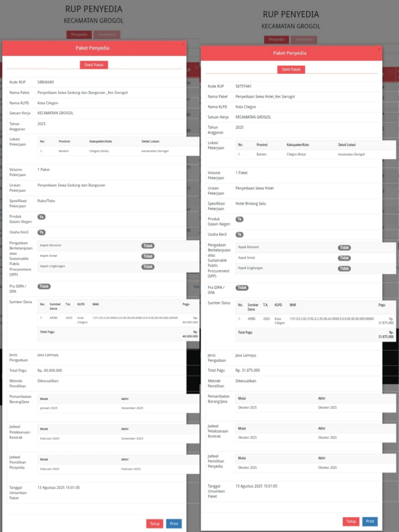 CILEGON (Realita) – Rencana belanja Kecamatan Grogol menuai sorotan setelah muncul data penganggaran untuk sewa hotel dan gedung pada tahun 2025. Informasi tersebut terungkap melalui Sistem Informasi Rencana Umum Pengadaan (SiRUP) yang mencatat alokasi dana sewa hotel sebesar Rp31,87 juta dan sewa gedung atau bangunan sebesar Rp40 juta.