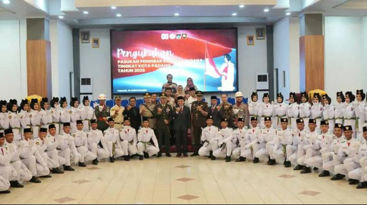 PADANG (Realita)- Langkah tegap dan sorot mata penuh semangat ditunjukkan 54 putra-putri terbaik Kota Padang. Mereka merupakan Pasukan Pengibar Bendera Pusaka (Paskibraka) yang dikukuhkan Wakil Wali Kota Padang Maigus Nasir di Gedung Youth Center Bagindo Aziz Chan, Jumat (15/8/2025) malam.