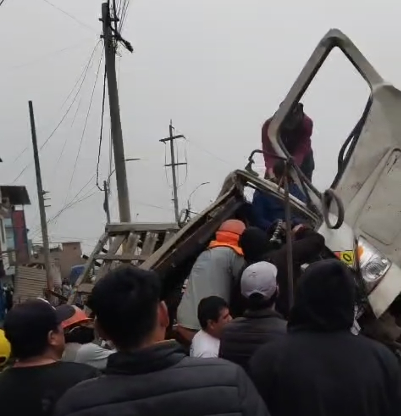 Kamera keamanan merekam momen tepat ketika truk berat itu terbalik, menyebabkan muatannya jatuh menimpa sepeda motor. Kedua penumpang tewas seketika, sementara pengemudi truk, yang mengalami luka parah, dibawa ke Rumah Sakit Collique, di mana ia meninggal beberapa jam kemudian.