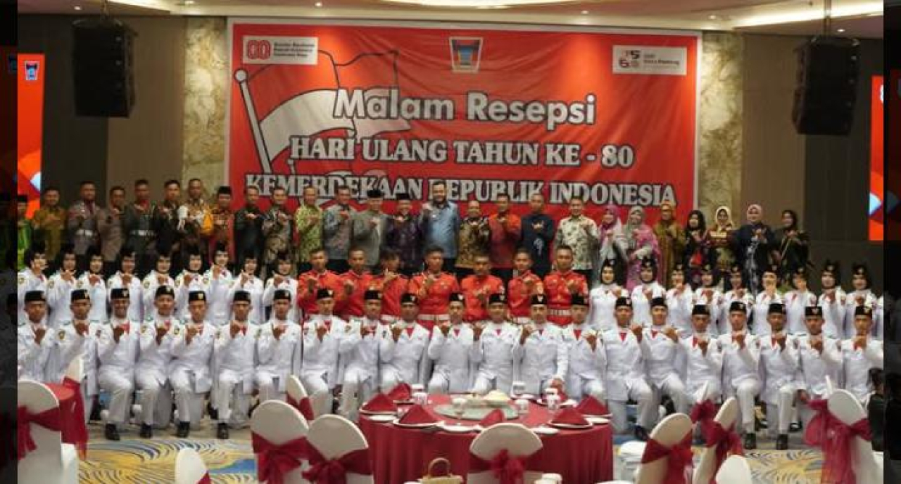 PADANG (Realita)-Suasana penuh semangat dan kebersamaan mewarnai malam resepsi HUT RI ke-80 di ballroom Hotel Mercure, Minggu (17/8/2025) malam.