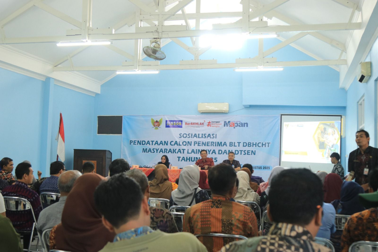 KEDIRI (Realita) - Guna meningkatkan akurasi data penerima bantuan sosial, Pemerintah Kota Kediri melalui Dinas Sosial menyelenggarakan Sosialisasi Pengelolaan Data Tunggal Sosial dan Ekonomi Nasional (DTSEN) pada Sistem Informasi Kesejahteraan Sosial Next Generation (SIKS NG), Kamis, 21 Agustus 2025.