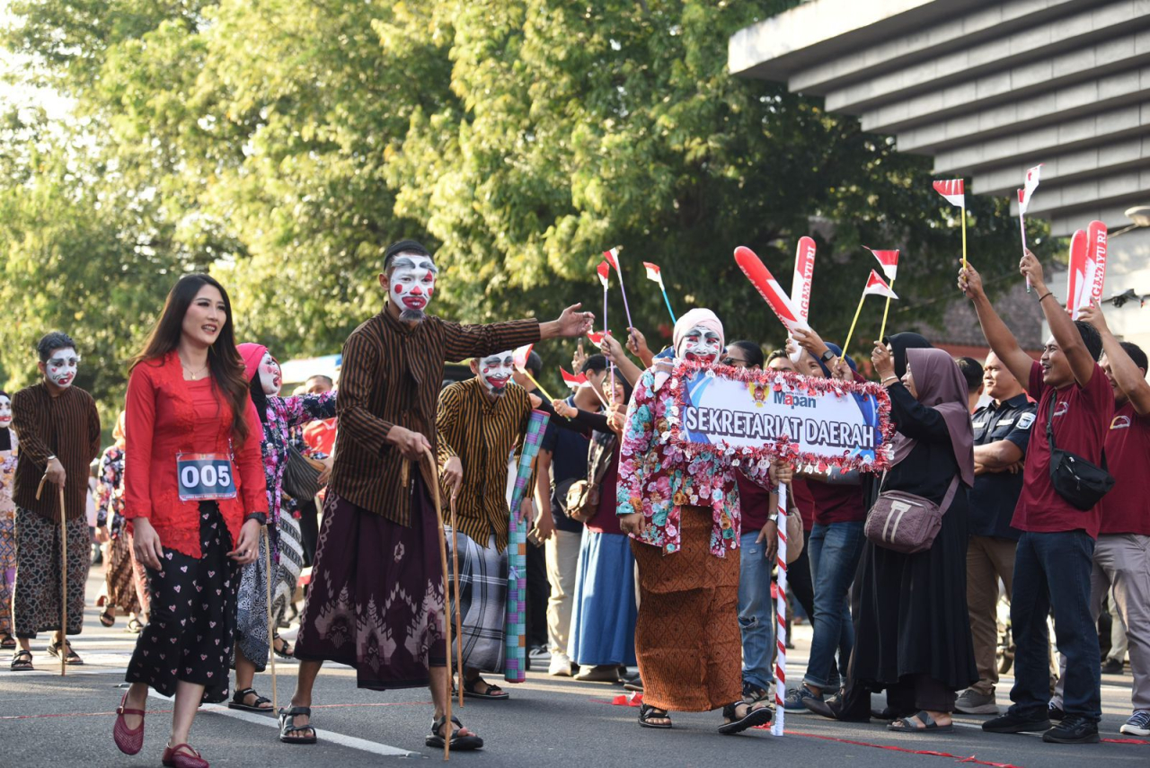 Disusul peserta nomor urut 1 dari RS Baptis, lalu Kelurahan Kampung Dalem, Kelurahan Mrican, SMP PGRI 1, Sekretariat Daerah dan lainnya.