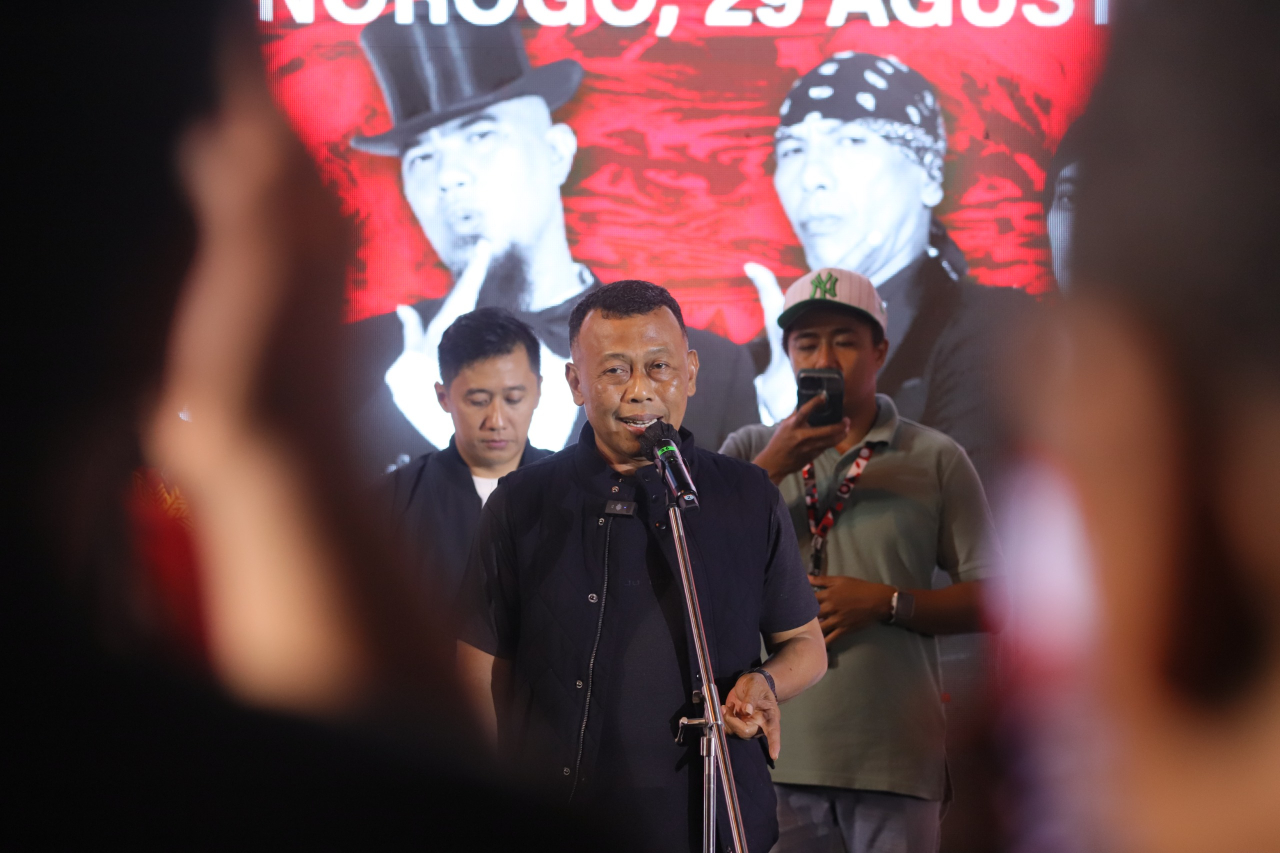 “Saya harap penonton menjaga ketertiban. Tidak ada saling senggol saat menari dan bernyanyi hingga menimbulkan kericuhan. Jangan membawa barang berharga untuk mengantisipasi copet. Mari kita jaga nama baik Ponorogo sebagai kota budaya dan kota yang santun,” tegasnya.