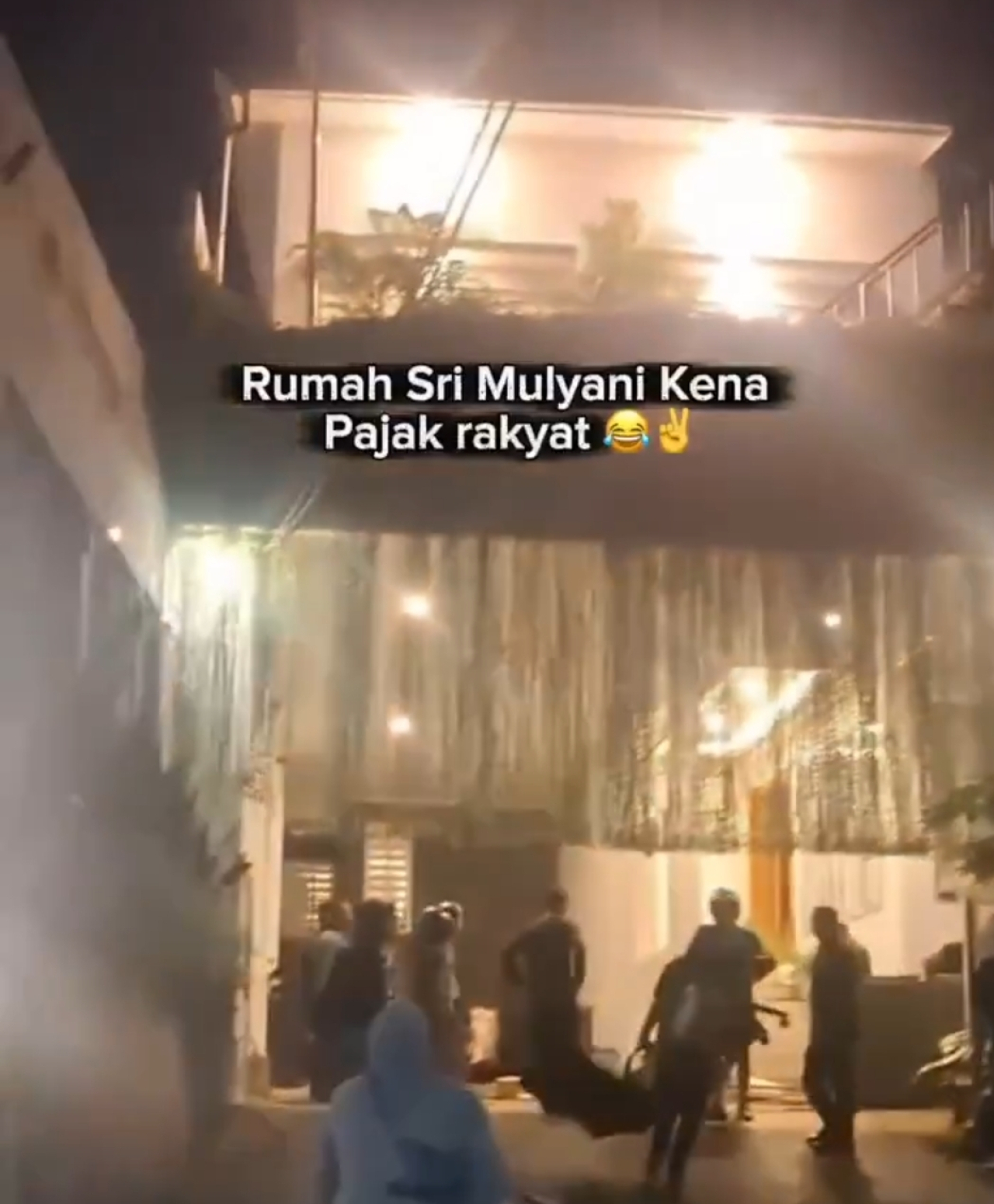 Sejumlah massa terlihat membawa keluar barang-barang kebutuhan rumah tangga seperti kursi, televisi, panci, hingga teko. Tak berhenti di situ, para penjarah juga disebut mengambil lukisan dan perhiasan dari dalam rumah yang diduga milik Sri Mulyani.