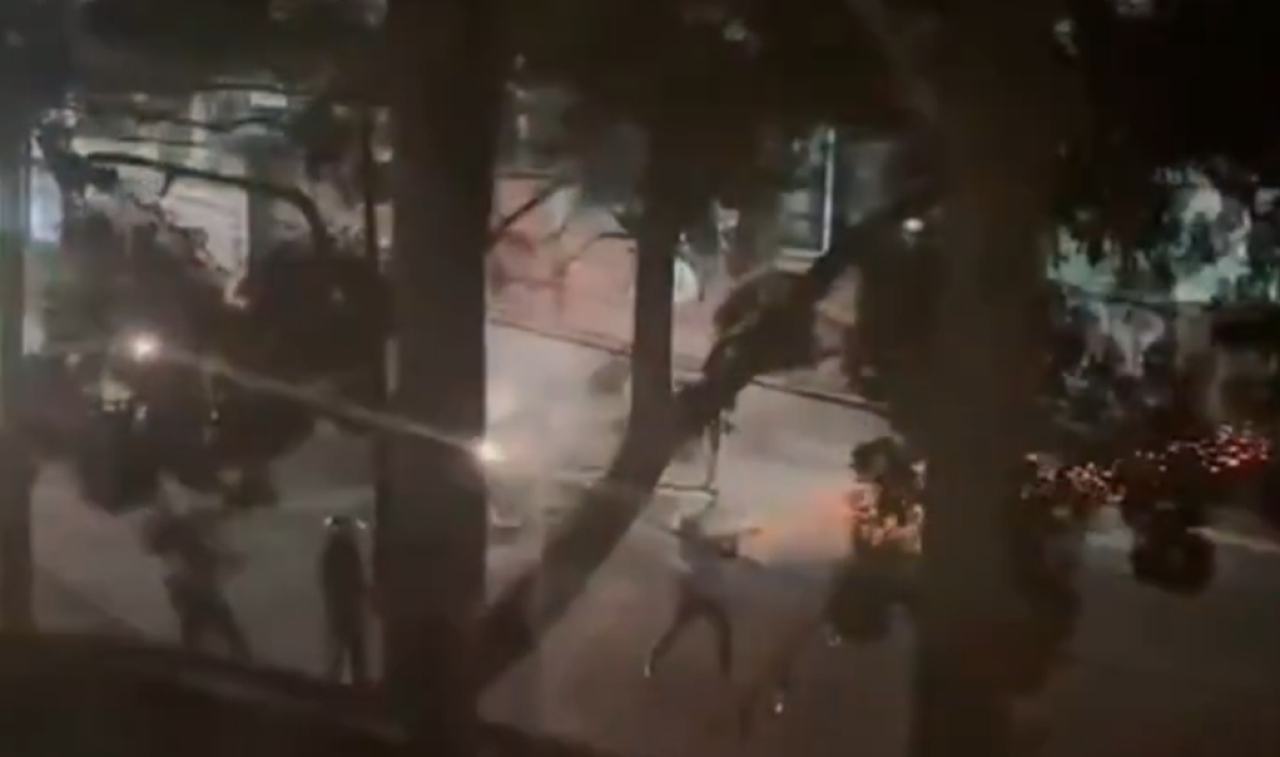 Dari rekaman video yang beredar di media sosial, terlihat aparat melepaskan tembakan gas air mata ke arah massa di Jalan Tamansari. Bentrokan sempat meluas hingga ke sekitar kawasan kampus.