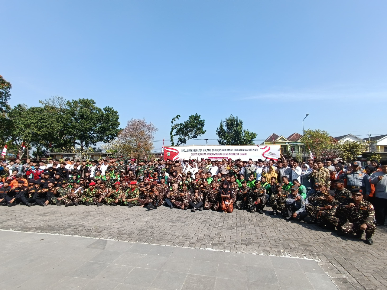 MALANG (Realita) – Pemerintah Kabupaten Malang menggelar Apel Jogo Kabupaten Malang yang dirangkaikan dengan doa bersama dan peringatan Maulid Nabi Muhammad Shallallahu ‘Alaihi Wasallam di Pendopo Kabupaten Malang, Jl. Panji Nomor 158 Kepanjen, Rabu (3/9/2025). Acara tersebut juga menjadi momentum peluncuran Gerakan Pangan Murah sebagai wujud nyata komitmen menjaga stabilitas keamanan dan kesejahteraan masyarakat.