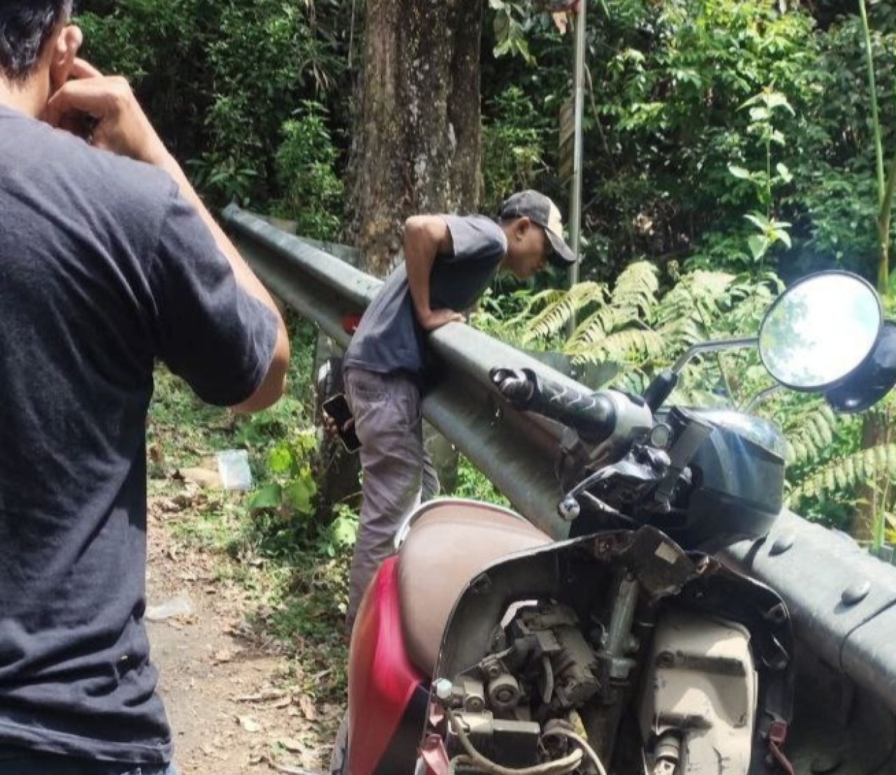 Menurut informasi dari warga sekitar, motor tersebut menabrak pembatas jalan saat melaju di jalur menanjak.