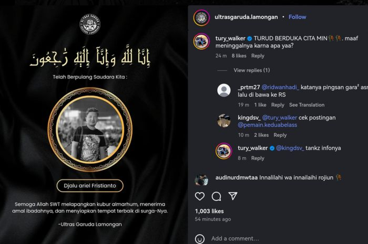 Konfirmasi berita duka datang dari akun instagram Ultras Garuda dan Ultra Garuda Lamongan.