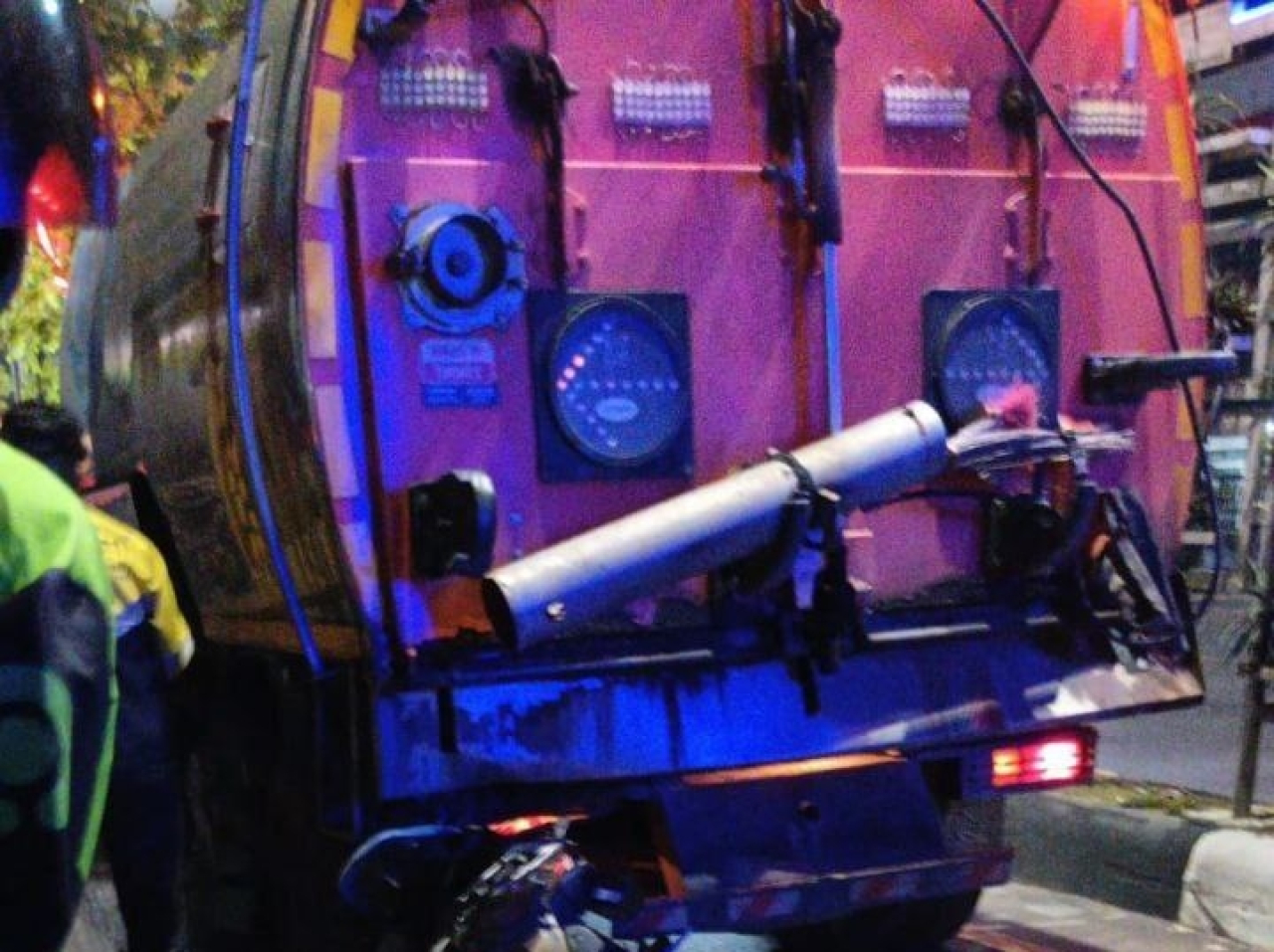 “Mobil penyemprot jalan malam hari operasinya, tapi cuma pakai lampu hazard. Pengendara bisa tidak sadar ada truk.”