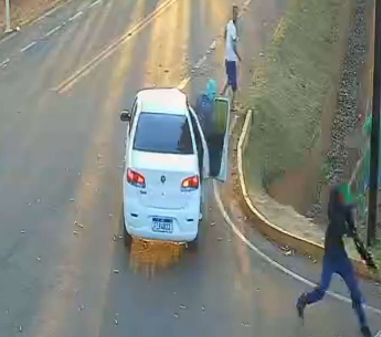 Gambar menunjukkan pengemudi keluar dari mobil, dan penembak kedua berlari ke arah kendaraan yang pintunya terbuka. Setelah beberapa meter, penembak keluar dari mobil dan menembak korban yang terjatuh lagi.