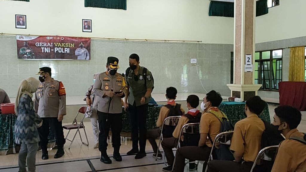 “Kami ke SMK 1 Krian ini guna memastikan proses pembelajaran tatap muka berjalan lancar sesuai protokol kesehatan. Serta memantau pelaksanaan vaksinasi jenis sinovac sejumlah 2.000 dosis kepada tenaga pengajar dan pelajar,” ujar Kapolresta Sidoarjo Kombes Pol. Kusumo Wahyu Bintoro.