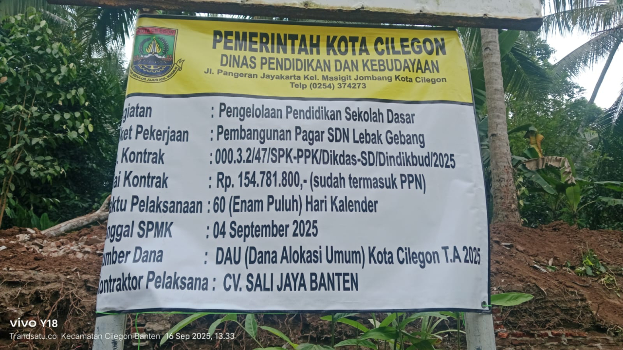 Dua proyek yang bersumber dari Dana Alokasi Umum (DAU) Kota Cilegon Tahun Anggaran 2025 tersebut telah resmi berjalan sejak keluarnya Surat Perintah Mulai Kerja (SPMK).