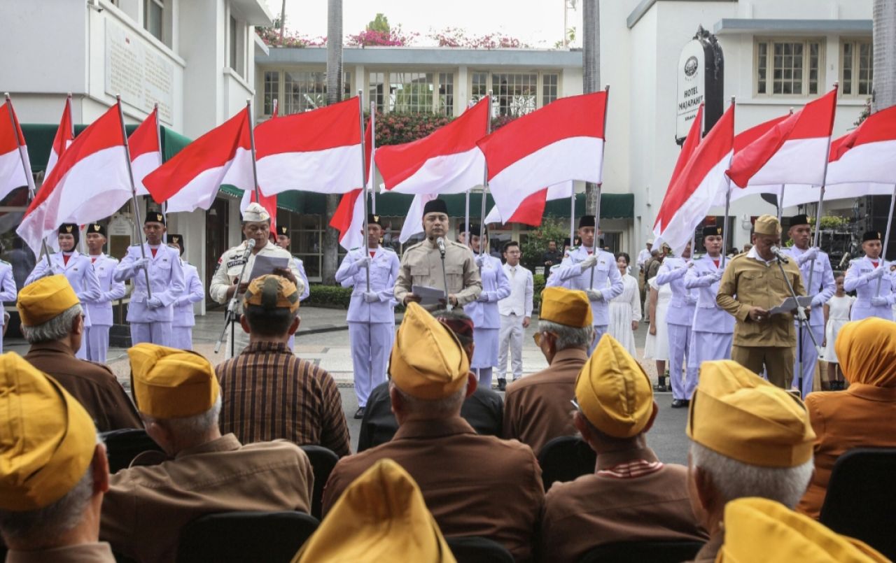 SURABAYA (Realita)– Suasana Jalan Tunjungan, tepat di depan Hotel Majapahit, Minggu (21/9/2025), berubah menjadi mesin waktu yang membawa ribuan pasang mata kembali ke tahun 1945. Denting musik keroncong, lantunan puisi, tarian, hingga derap sepeda kuno berpadu menghadirkan atmosfer perjuangan kala bendera Belanda diruntuhkan, dan Merah Putih berkibar gagah.