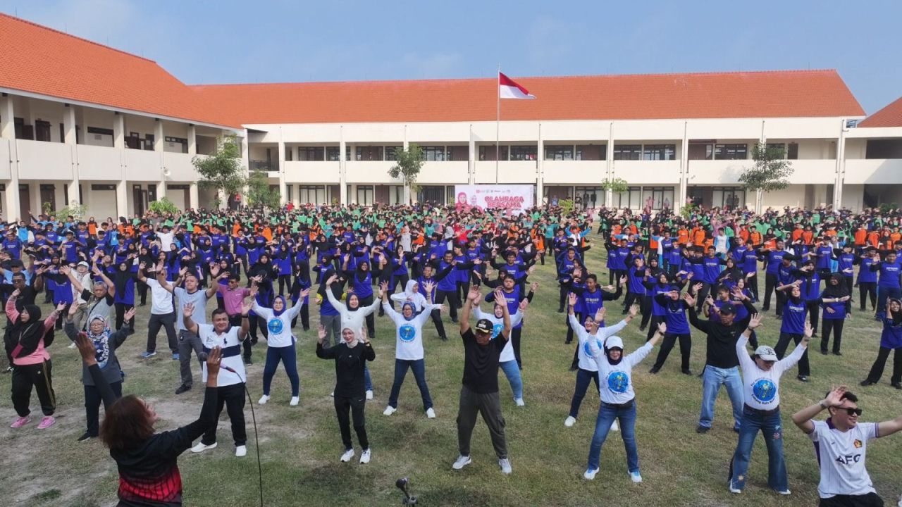 KEDIRI (Realita) - Wali Kota Kediri, Vinanda Prameswati senam bersama di SMPN 9 Kota Kediri, Jumat, 26 September 2025. Kegiatan ini dalam rangka memperingati Hari Olahraga Nasional (Haornas) XLII tahun 2025.
