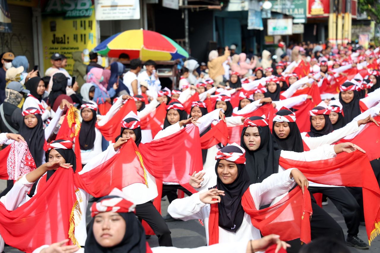 SURABAYA (Realita)— Sebanyak 1.000 pelajar dari berbagai sekolah di Surabaya menampilkan tari remo massal dalam gelaran budaya Sembrani Bumi Nusantara 2025 bertema “Napak Tilas – Babat Alas Suroboyo”, Minggu, 5 Oktober 2025. Acara tahunan yang digelar di halaman Kantor Kelurahan Lidah Wetan, Kecamatan Lakarsantri, itu berlangsung meriah dan dipadati ribuan warga.