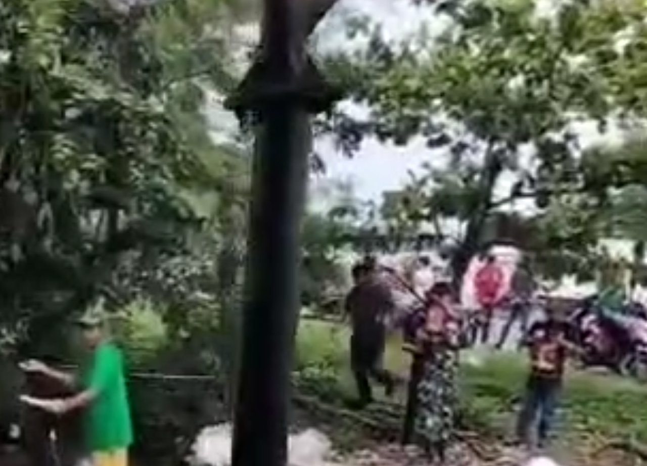 "Tadi belum ada polisi, baru warga yang berkumpul pada liat. Kayanya sekarang udah ditangani sama polisi. Tadi juga ramai warga di lokasi pada kumpul foto video," ujarnya.