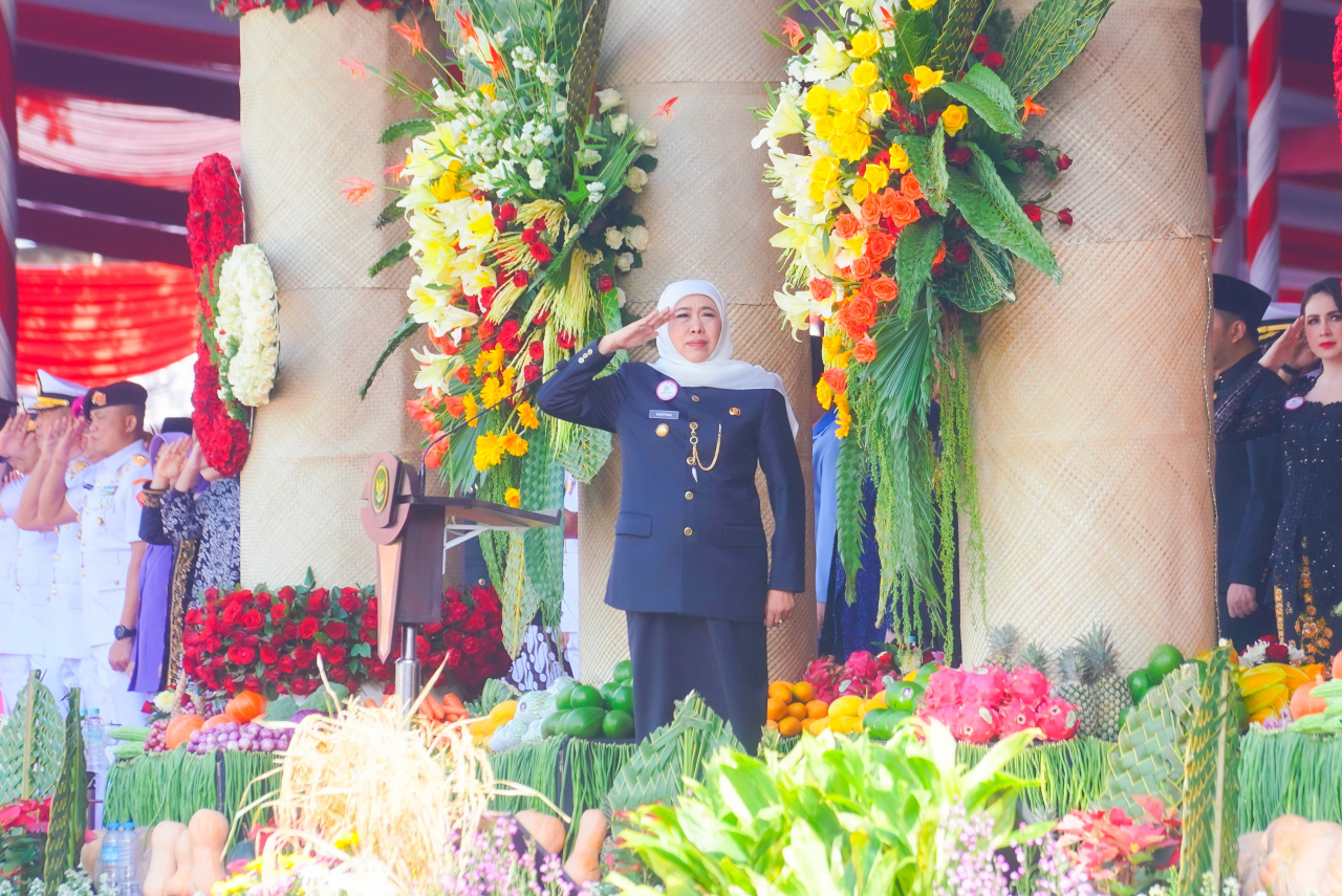 Ajakan tersebut disampaikan Gubernur Khofifah saat memimpin Upacara Peringatan Hari Jadi ke-80 Provinsi Jawa Timur di Gedung Negara Grahadi Surabaya, Minggu (12/10).