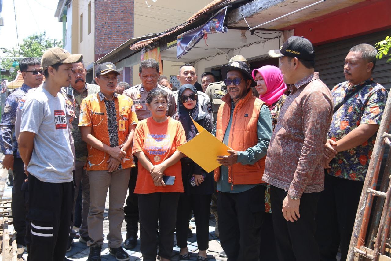Mengetahui hal ini bersama Plt. Kepala BPBD Kabup[aten sidoarjo Sabino Marioano, Kepala Badan Pelayanan Pajak Daerah Neor Rochmawati, Camat Sidoarjo Bupati Sidoarjo H. Subandi menjau langsung konsini rumah yang telah mengalami kerusakan, Kamis (23/10/2025).