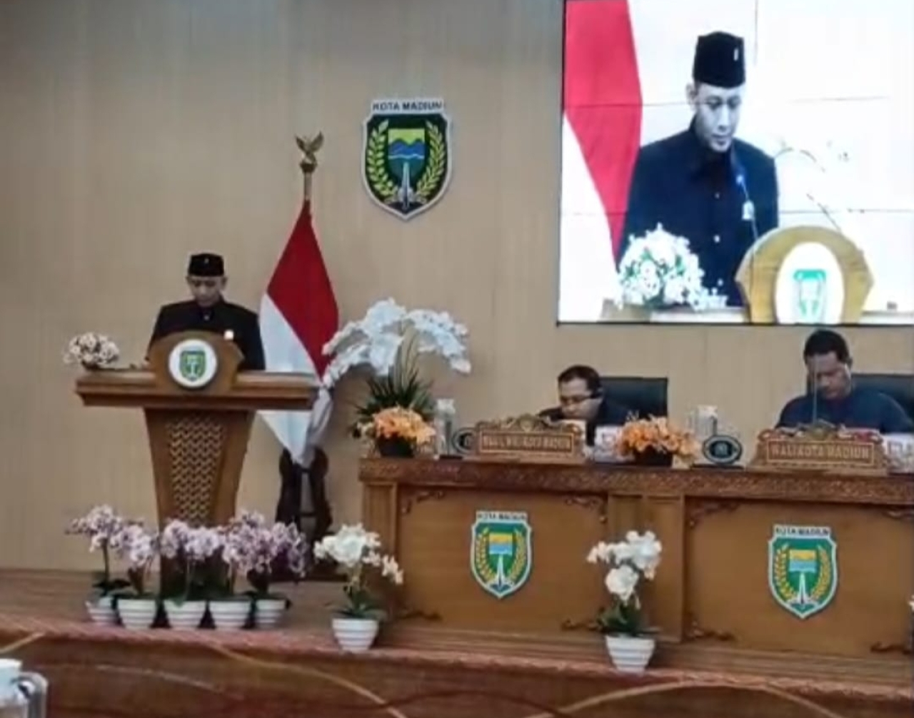 MADIUN (Realita) - Dewan Perwakilan Rakyat Daerah (DPRD) Kota Madiun menggelar rapat paripurna dengan agenda penyampaian Pemandangan Umum (PU) fraksi-fraksi terhadap Rancangan Peraturan Daerah (Raperda) tentang Anggaran Pendapatan dan Belanja Daerah (APBD) Kota Madiun Tahun Anggaran 2026, Jumat (31/10/2025).