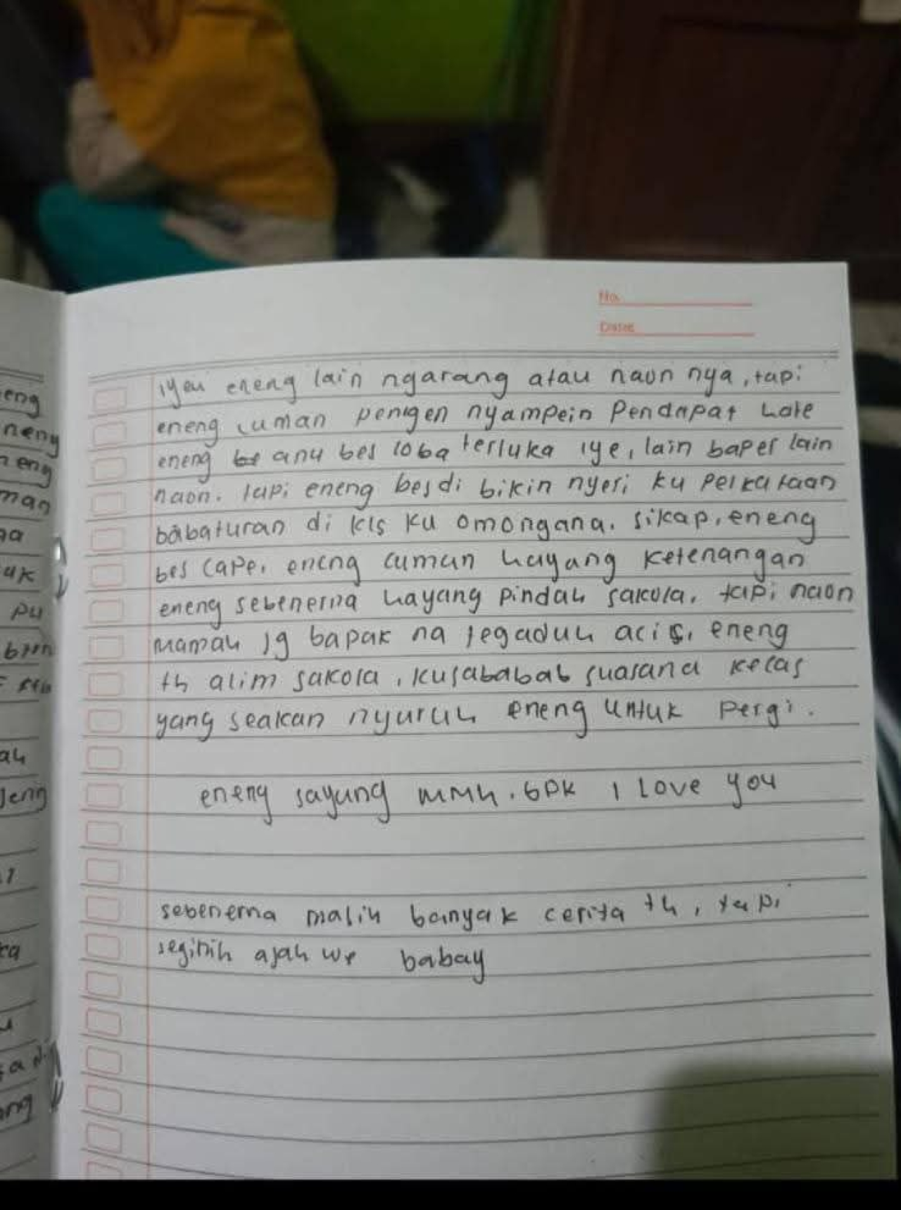 Seiring dengan kabar duka ini, beredar pula di media sosial sebuah foto catatan tulisan tangan yang diduga milik korban. Tulisan tersebut berisi permintaan maaf kepada orang tua, guru, dan teman-temannya, serta ungkapan perasaan pribadi yang kini menjadi perhatian publik.kus