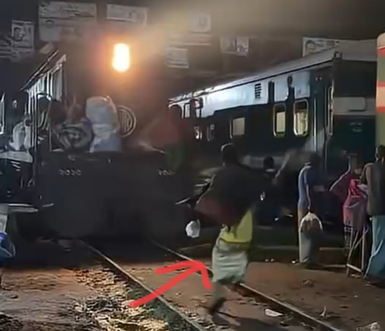 Kejadian tersebut direkam menggunakan ponsel oleh petugas di stasiun dan menjadi viral di media sosial.pr