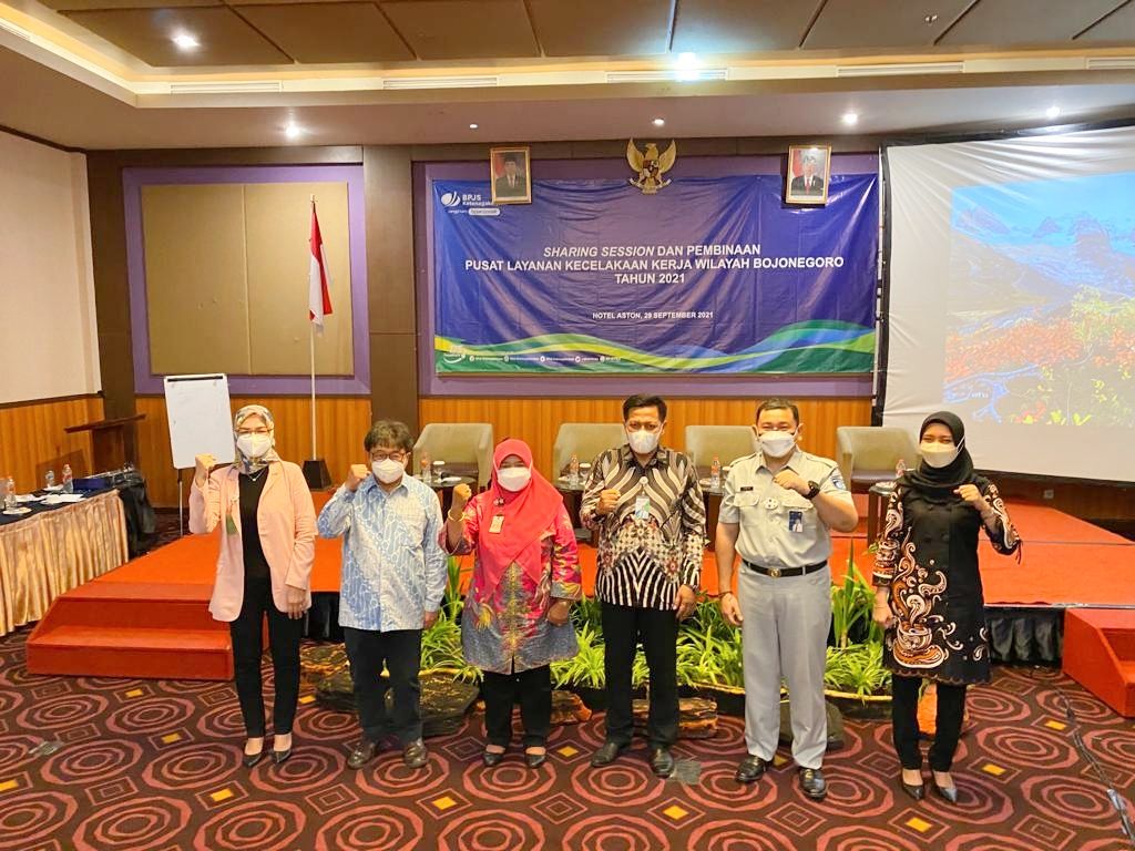 BOJONEGORO (Realita) - BPJS Ketenagakerjaan (BPJAMSOSTEK) Cabang Bojonegoro menggelar Sharing Session dan Pembinaan Pusat Layanan Kecelakaan Kerja (PLKK) di Hotel Aston Bojonegoro, Rabu (29/09/2021). Kegiatan ini menghadirkan 3 narasumber dari Jasa Raharja, Pegawai Pengawas Ketenagakerjaan dan dokter Penasehat Ketenagakerjaan Wilayah Jawa Timur.