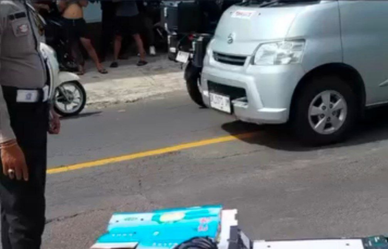 "Korban keluar dari Indomaret dan berada di pinggir jalan, namun posisinya di jalur berlawanan arah. Saat korban berusaha berbelok ke timur, ia terpeleset dan terjatuh," jelasnya.