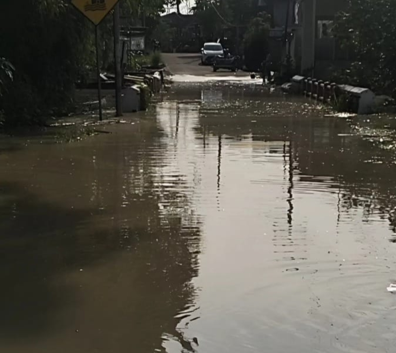 Ketinggian air yang cukup tinggi menyebabkan akses warga terganggu dan membuat sebagian pengendara memilih memutar arah demi menghindari arus yang semakin deras.