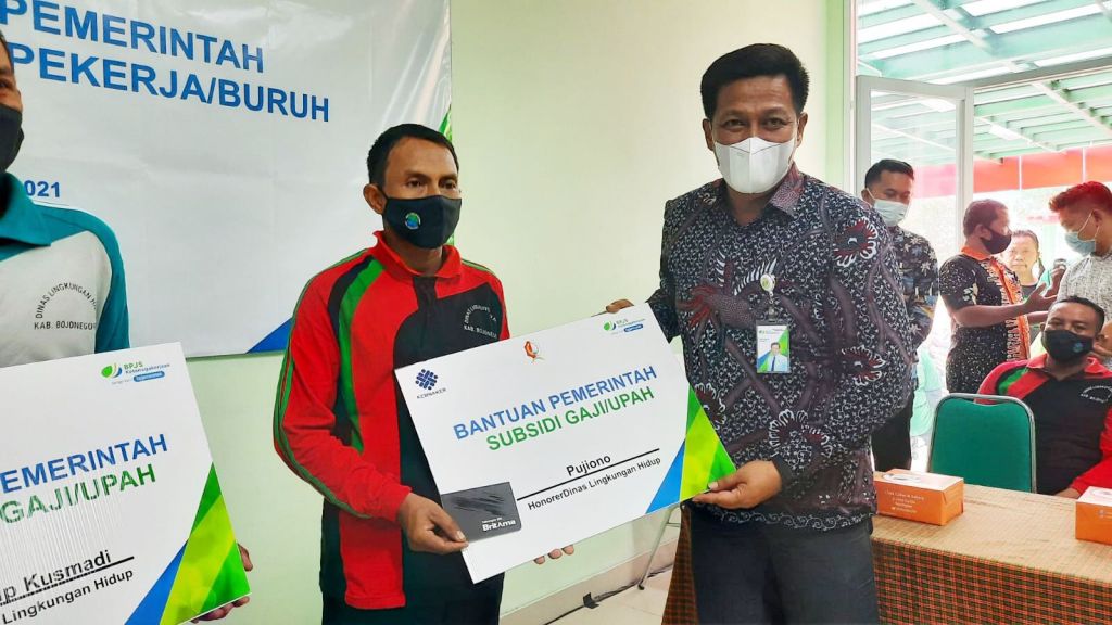 Tiga pekerja yang mewakili para penerima BSU 2021 semuanya tenaga harian lepas (THL) Dinas Lingkungan Hidup (DLH) Kabupaten Bojonegoro. Dan BRI dipilih untuk menerima BSU mereka yang ditransfer langsung oleh Pemerintah.
