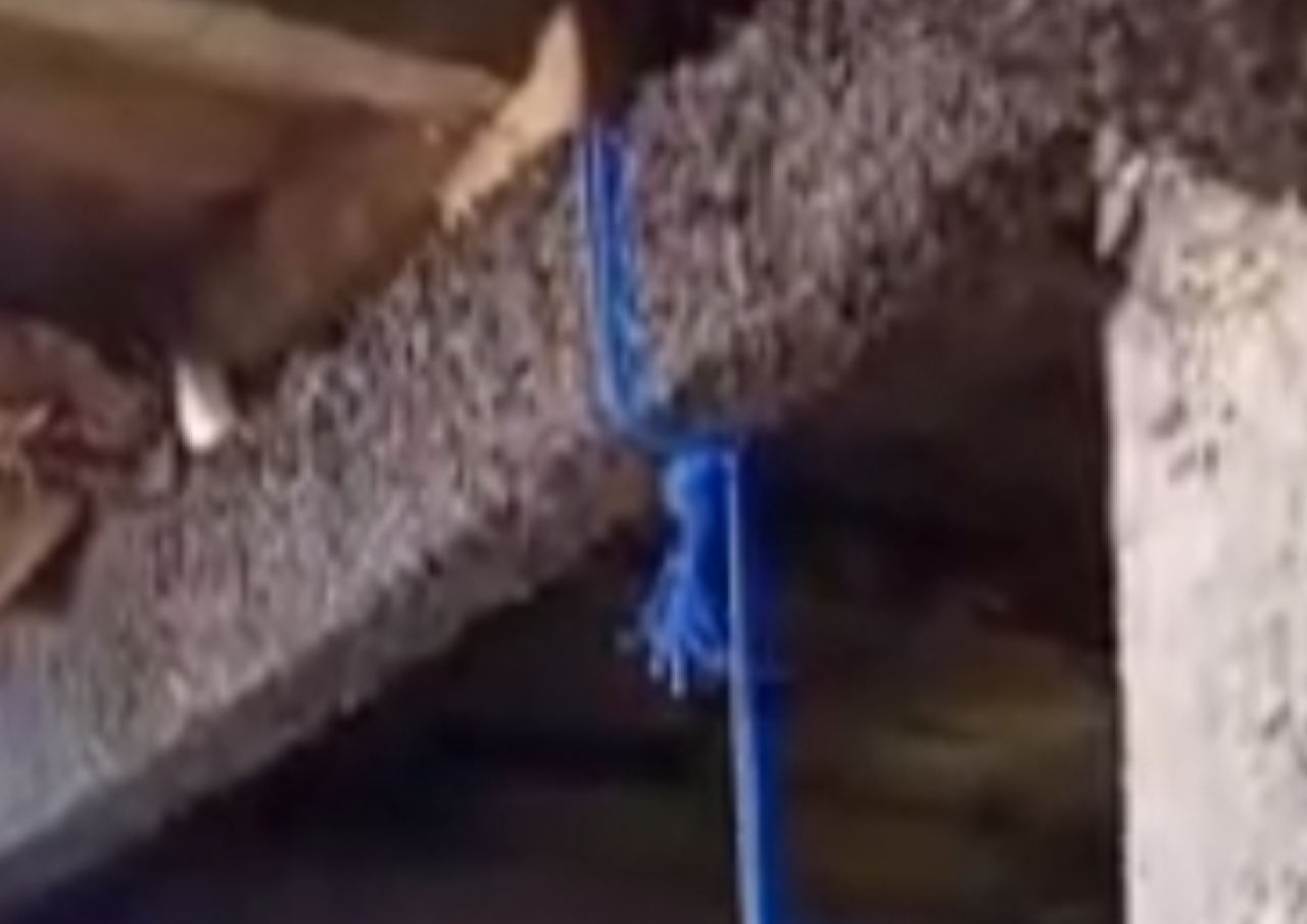 REP ditemukan menggantung dengan tali tambang plastik biru, tanpa baju, hanya mengenakan celana training abu-abu.