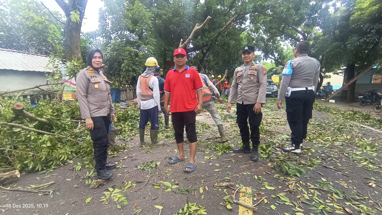 Seperti diberitakan sebelumnya, pohon besar yang berpotensi tumbang di tengah kondisi cuaca ekstrem saat ini, masih mengancam keselamatan warga dan pengendara kendaraan bermotor di Jalan Raya Deandles, Kecamatan Paciran, Lamongan.