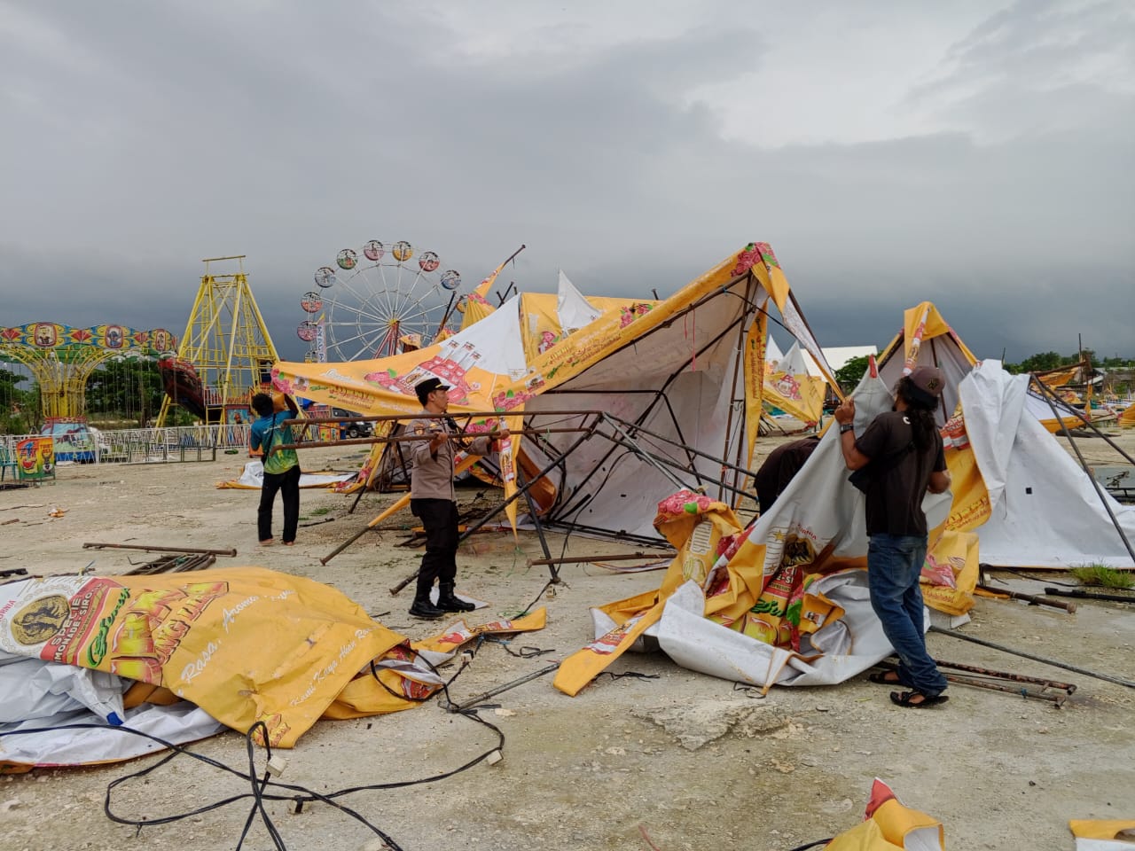 Selain itu, puluhan tenda acara di Lapangan Gajah Mada, Kecamatan Lamongan, juga ambruk akibat terpaan angin.